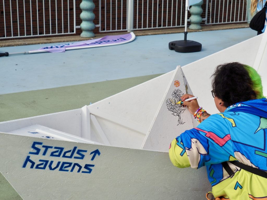 Op 26 september voeren bijna honderd Groningers met ons mee om te dromen over de toekomst van het Havenpark. Op verschillende boten bekeken we het gebied vanuit uiteenlopende perspectieven – van natuur en water tot veiligheid, nachtleven en historie – en ontstonden levendige gesprekken, tekeningen en verhalen over wat dit nieuwe stadspark aan het water kan worden.